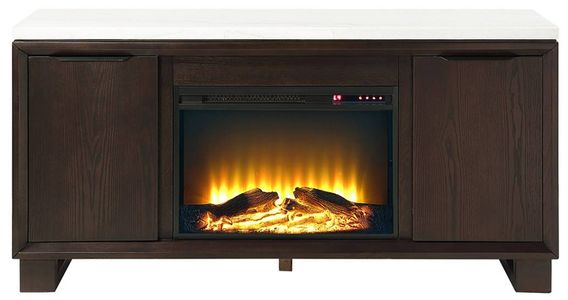 The Edwyn server with fireplace blends a warm rustic espresso finish and natural marble top with integrated fireplace and ample storage. Stylish and functional, it creates a cozy, elegant focal point in living or dining spaces.Read More