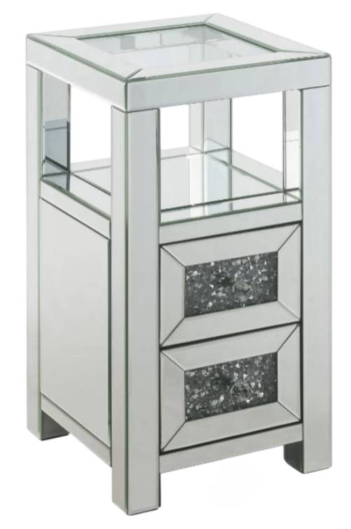 The modern glamour of the Noralie Accent Table will brighten your foyer or bedroom. This brilliant accent table features a mirrored finish and a clear tempered glass top, adding dimension, contrast, and shine to this functional piece.Read More