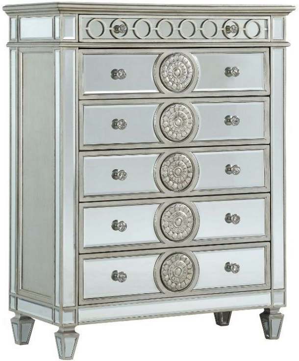 The Varian bed provides a commanding presence in any room. This contemporary panel bed features a padded rectangular headboard and low profile footboard in luxurious dark upholstery with elegantly tapered legs. Crafted with a transitional look that is an ideal addition to any bedroom, the headboard and footboard is accented with button tufting, raised geometric patterns and mirror finish. This fashionable set will fuse with the surrounding Decor, transforming a room from ordinary into something interesting and sophisticated.