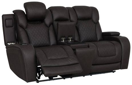 Relax in modern comfort with the Wendell dark gray power reclining loveseat. Plush seating, smooth power motion, and durable upholstery pair with a convenient center console featuring cup holders and storage, perfect for cozy movie nights and lounging.Read More