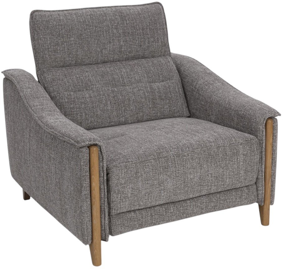 Experience modern comfort with this reclining accent chair, designed for both style and relaxation. Wrapped in soft, textured polyester, it offers plush support that invites you to unwind. The smooth reclining motion and gently curved silhouette create a cozy retreat, while oak wood accents add warmth and sophistication.Read More