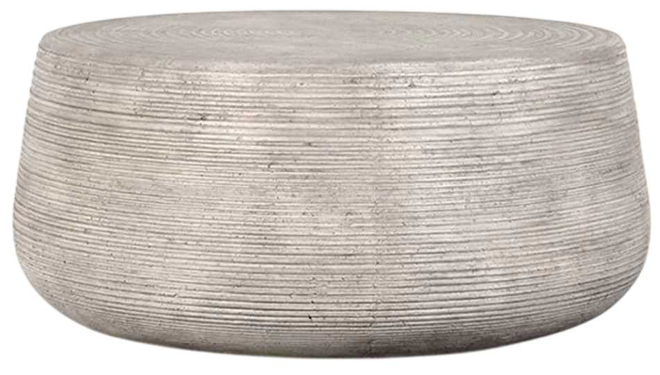 Fluted texture encircles the sides and top of this drum-shaped coffee table. With this added dimension and visual interest, this concrete table makes a bold focal point for any living space while a hollow base lightens the piece for ease of movement.Read More