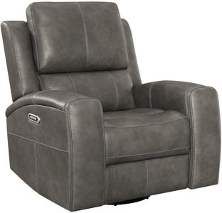 This triple power recliner chair invites you to unwind with motion, support, and quiet luxury. Wrapped in soft leatherette upholstery, it offers a supple touch that enhances every moment of rest. A gliding and swivel base flows effortlessly while plush cushions and contouring lumbar support cradle the body.Read More