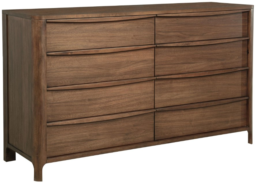 Dresser features rounded corners and gently curved fingertip pulls for easy operation