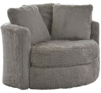 Upholstered in a fuzzy faux fur fabric, this accent chair exudes an aura of warmth and welcome. Chic and brimming in softness, the texture complements the rounded silhouette of the piece perfectly. Lounge on the wide firm seat cushions as you lean back on the soft oversized back pillows.Read More