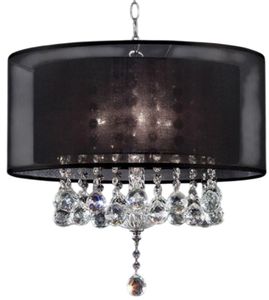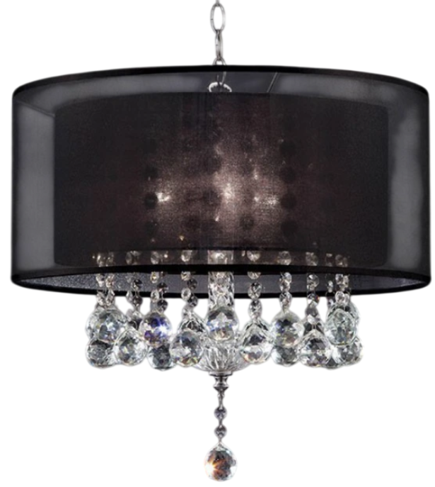 Imported crystal droplets cascade off this ceiling lamp finished in chrome with a brilliant dark shade.