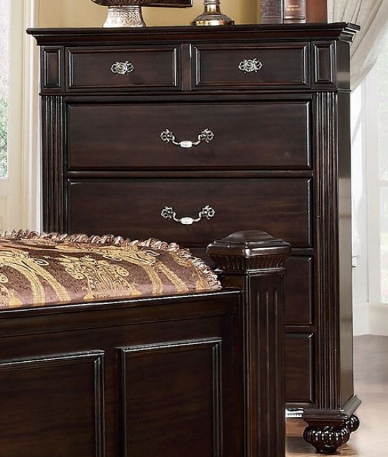 Take your bedroom set to the next level. These beautifully decorated case goods are finished in a stunning dark walnut finish. Antique brass handles with acrylic accents complete the overall luxurious look and feel.Read More