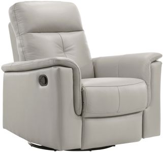 Silver-hued top grain leather upholstery with faux leather match covers the chair, providing a gentle touch, and a perfect complement to your home’s décor.