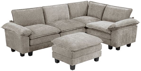 Exceptional comfort is a cornerstone of this set, thanks to high-density foam padding over resilient pocket coils, ensuring consistent plushness and robust support for years of enjoyment, with each individual seat boasting a substantial weight capacity of 300 lbs. Constructed with durable plywood frames and accented by chic exposed feet with a black faux wood finish, this sectional promises both enduring quality and a refined touch to your home. With reversible back and loose seat cushions, complete with practical removable zippered covers, maintenance is effortlessly simple, ensuring your modular sofa remains a beautiful and comfortable haven for all.