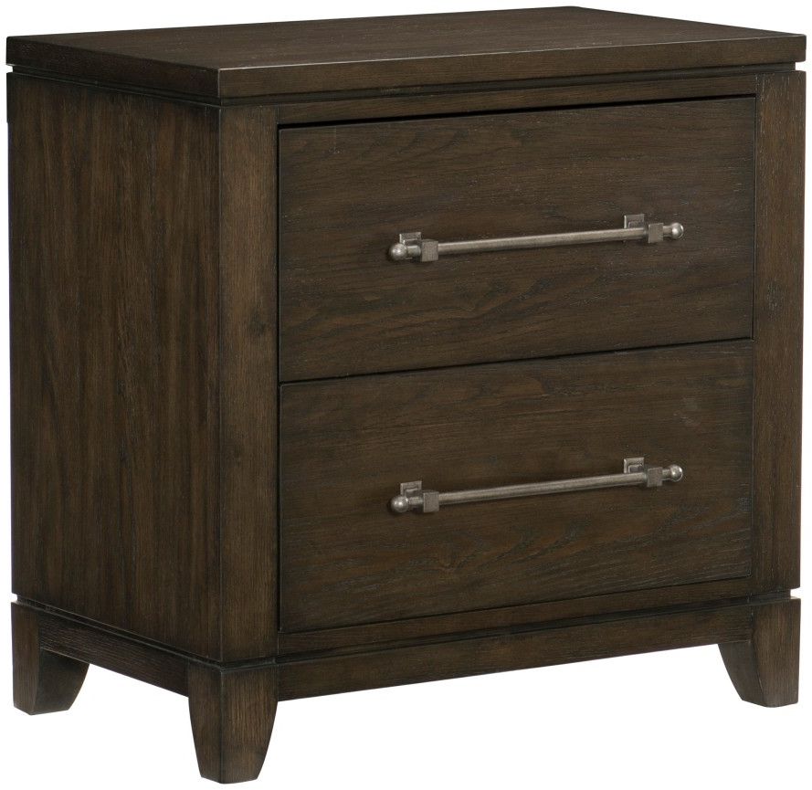 The contemporary styling of the Griggs Collection will be the perfect addition to your bedroom. The nightstand’s prominent ash veneer features a dark brown finish lending to the modern appearance. Elongated fixed drawer pulls center each drawer front further lending to the soft modern look.Read More