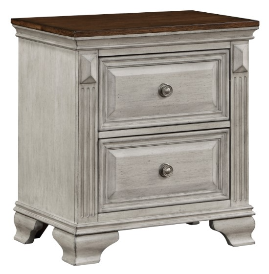 The stately presence of the Marquette Collection is steeped in traditional accenting, culminating in a refined look for your bedroom. The nightstand features frame molding, routed pilasters, and a two-tone gray and brown finish over oak veneer. The drawers of the nightstand are accented with antique bronze-finished knob hardware.Read More